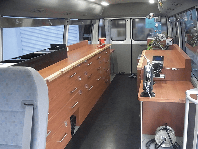 打合せ→設計→シャシー入庫→パーツ製造→構造体組立→鈑金塗装→艤装→車両完成→車両出庫→納車 お客様のさまざまなご要望に対応し、一点物の受注生産という形で製作しております。製作期間(設計時間を除く)は約2〜3ヶ月いただいている車両がほとんどですが、構造体の加工程度、電装品取付け内容によっては期間がかかる場合がございます。
